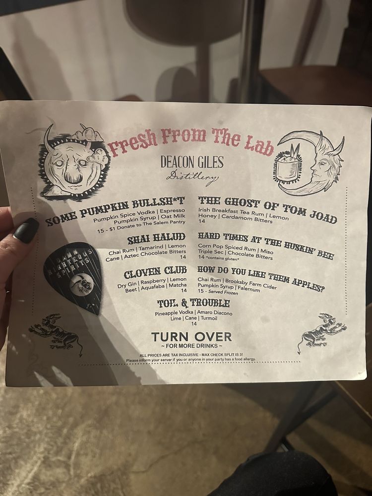 Deacon Giles Distillery, located in Salem, MA, offers a unique experience with its range of spirits and cocktails. The distillery is known for its small yet flavorful menu made with their own spirits, creating a distinctive and enjoyable dining experience. Customers rave about the friendly staff, cool atmosphere, and delicious drinks. The history behind the distillery adds to the charm, with a fascinating tale of a devilish rum maker inspiring its name. With events, distillery tours, and a variety of spirits to sample, Deacon Giles Distillery is a must-visit spot for anyone looking for quality drinks in a cozy setting. Whether you're a fan of rum or looking to try something new, this distillery promises an unforgettable experience for visitors.